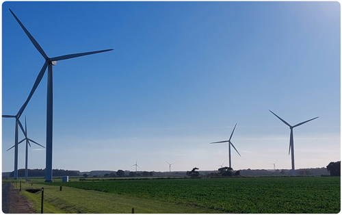 The wind farm was granted planning consent in 2012 and comprises six turbines, measuring 126.5m high to the tip of the blade.